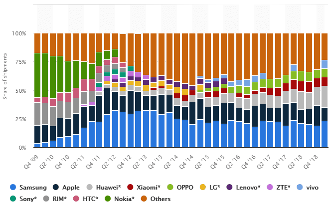 الحصة السوقية للشركات المزودة للهواتف عالميا