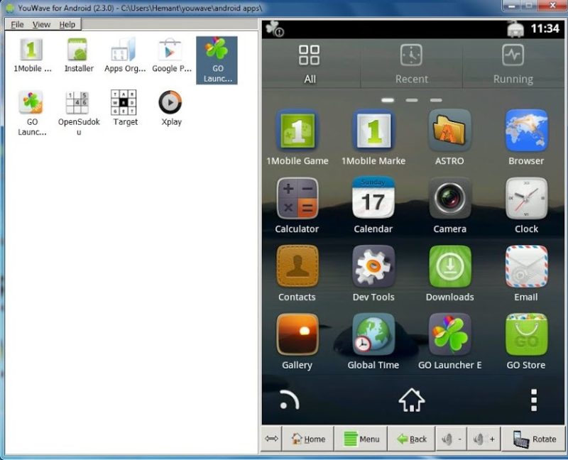 المحاكي يتم وضعه داخل نظام تشغيل ويندوز يشغل أندرويد كجزء من النظام فكرة نظام تشغيل داخل نظام تشغيل