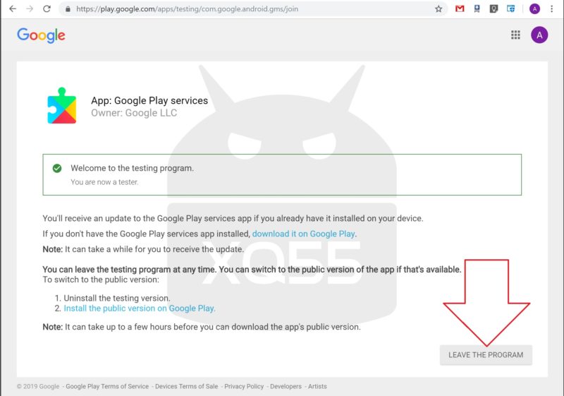 https://play.google.com/apps/testing/com.google.android.gms/leave