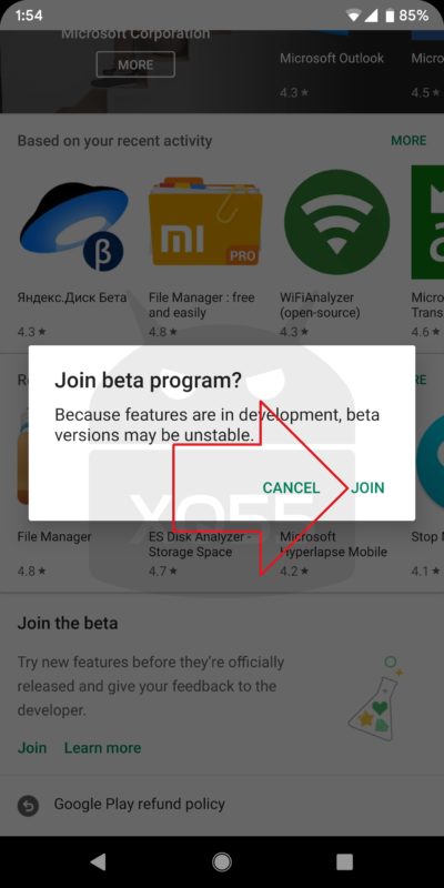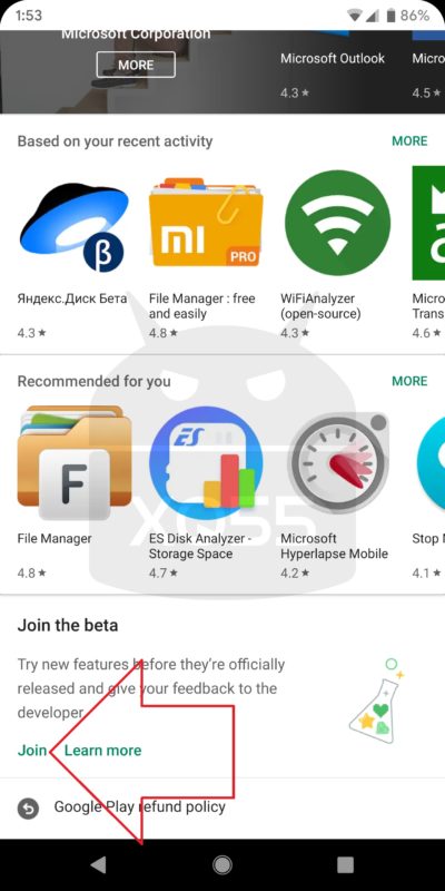 ستجد مكان للإنضمام للنسخة التجريبية إذا كانت مدعومة من مطور التطبيق