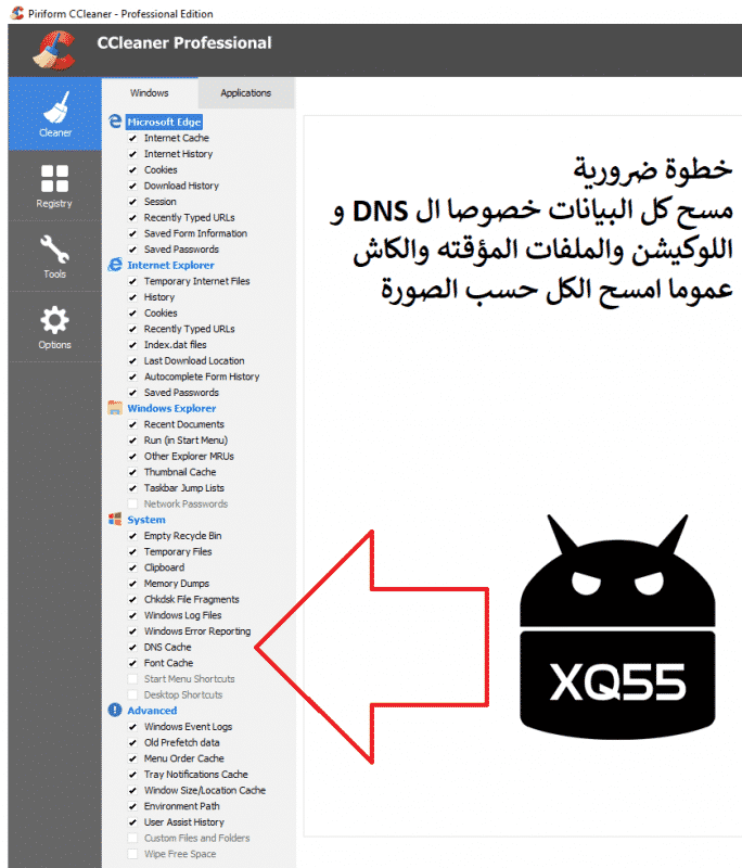 خامسا وال VPN يعمل على دولة أمريكا اذهب لسي كلينر الذي ركبت سابقا وامسح البيانات مثل الصورة: