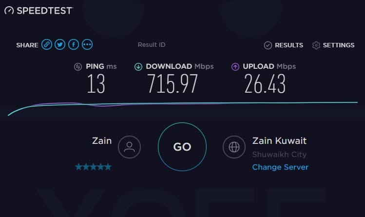 ++ متوسط السرعة التي أحصل عليها هو 150 إلى 200 تقريبا. إذا كان على شبكة الفايف جي.