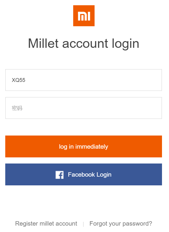 ثم ستذهب لصفحة ثانية تضع فيها حساب شاومي الذي المفروض أن يكون عندك أو سجل من خلال فيسبوك