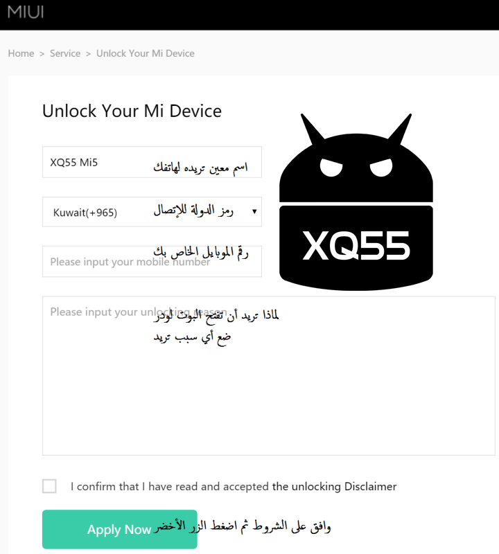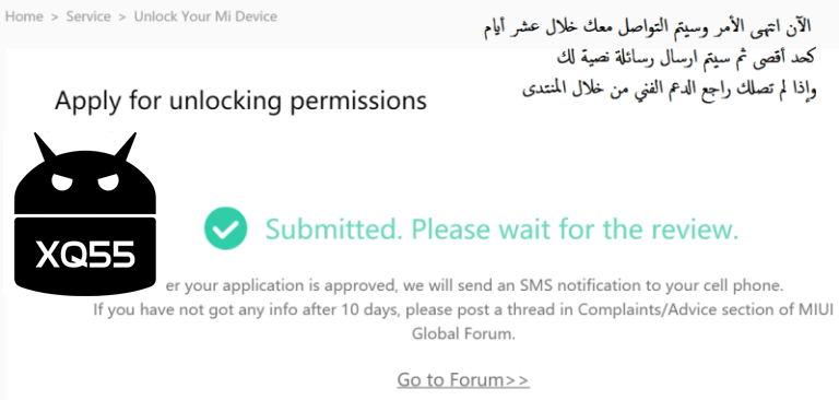 إذا لم تحصل على الرقم خلال فترة أقصاها 10 أيام اذهب للرابط التالي وضع حساب شاومي الخاص بك واكتب لهم بأنك لم تحصل على الصلاحية بعد