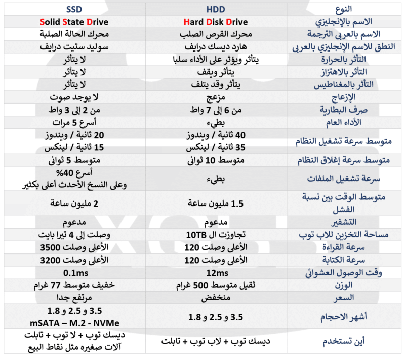 ** لا يوجد اعتبار لذواكر ال HDD في هذه المقالة وأي رقم يعني SSD.