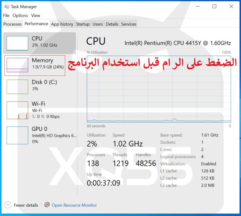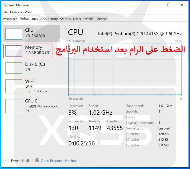 حددت أقل عدد بلوكات للذاكرة للحصول على أداء أعلى على حساب المعالج | اللون الأزرق |