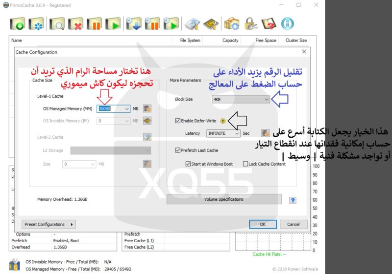 ثم تسرع الرام نفسه لأنه أصبح ذاكرة الآن ببرنامج Primo Cache