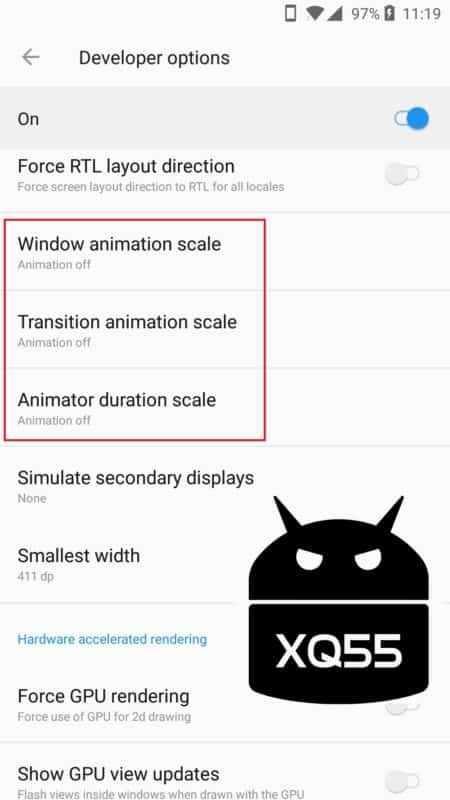 من خلال وضع Developer options
