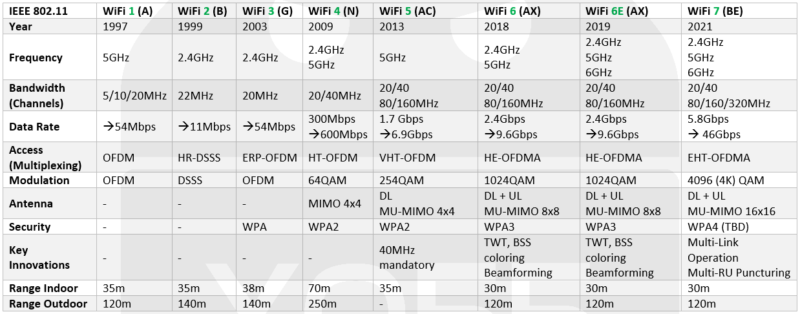 منها الستاندر واي فاي 2.4GHz و 5GHz و 6GHz