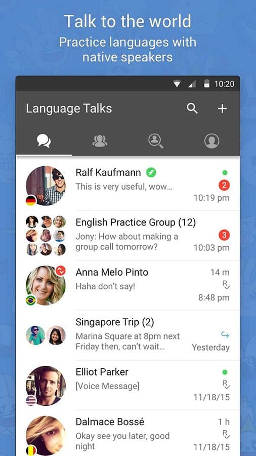 من افضل تطبيقات اندرويد لهذا الاسبوع، تطبيق HelloTalk والذي يمكن للمستخدم تعلم اللغات مهما كان نوعها عن طريق التحدث المجاني مع الاشخاص الذي لغتهم الام هي اللغة التي تريد تعلمها، أي التحدث مع شخص هو من اصل اللغة، التطبيق يحتوي على خطط للاشتراك الشهري والسنوي لفتح مميزات اكثر وايضا التطبيق يحتوي على مميزات رائعة واستخدمته لفتره وشاهدت جميع الامور التي يمكنها التطبيق مثل ميزة الترجمة بعد ارسال الرسالة والمزيد… شاهد الصور او حمله بنفسك للتعرف اكثر على التطبيق .