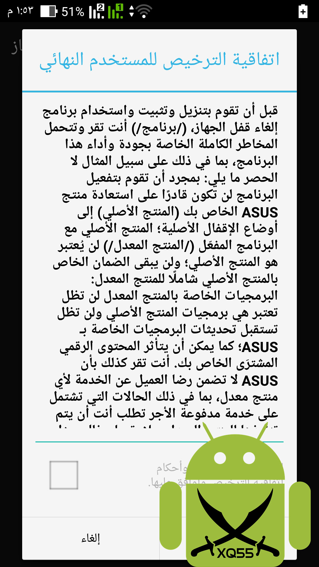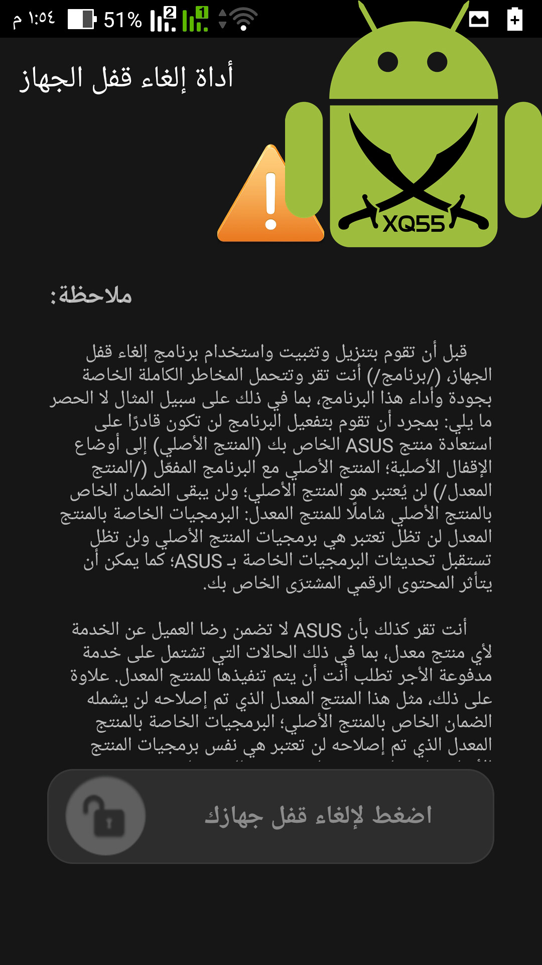 1. التجربة على مسؤوليتك الشخصية ولا يتحمل موقع XQ55 أي مشاكل قد تحصل لجهازك