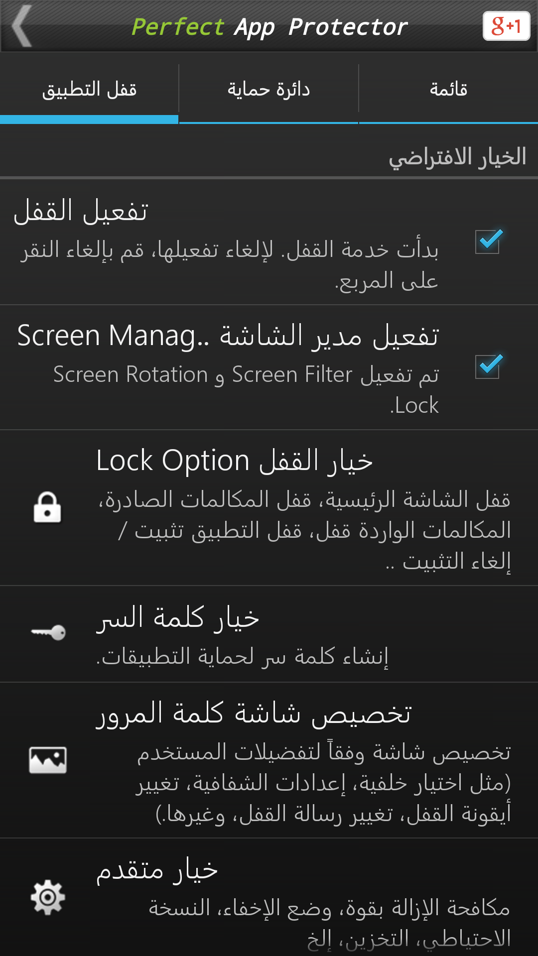 من منا لم يسمع بهذا التطبيق المشهور سابقا ومن منا لم يجربه, افضل تطبيق ممكن لقفل التطبيقات على الاطلاق بكم هائل من المميزات. يمكنك قفل التطبيقات, تخصيص خلفيات القفل, منع المتطفلين من استقبال وعمل المكالمات, منع المتطفلين من تثبيت والغاء تثبيت التطبيقات والكثير من المميزات الرائعة التي ستغنيك عن بقية تطبيقات القفل (رأي الكاتب).