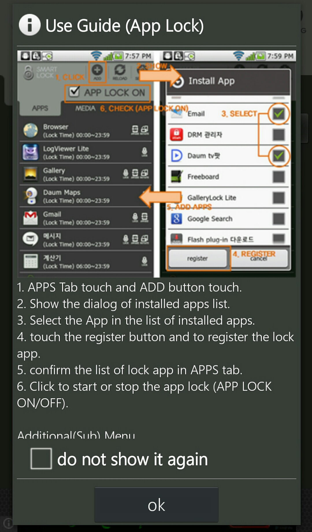 يتيح لك بالاضافة الى قفل تطبيقاتك, ان تقوم بقفل ملفات الوسائط خاصتك ايضا كالموسيقى والصور والفيديوهات وسيدعم قريبا ميزة قفل الاسماء. ويمكنك اضافته الى مسؤولو الاجهزة لضمان عدم قدرة العابثين على الغاء تثبيته. يمكنك شراء النسخة الكاملة للتخلص من اعلانات التطبيق.
