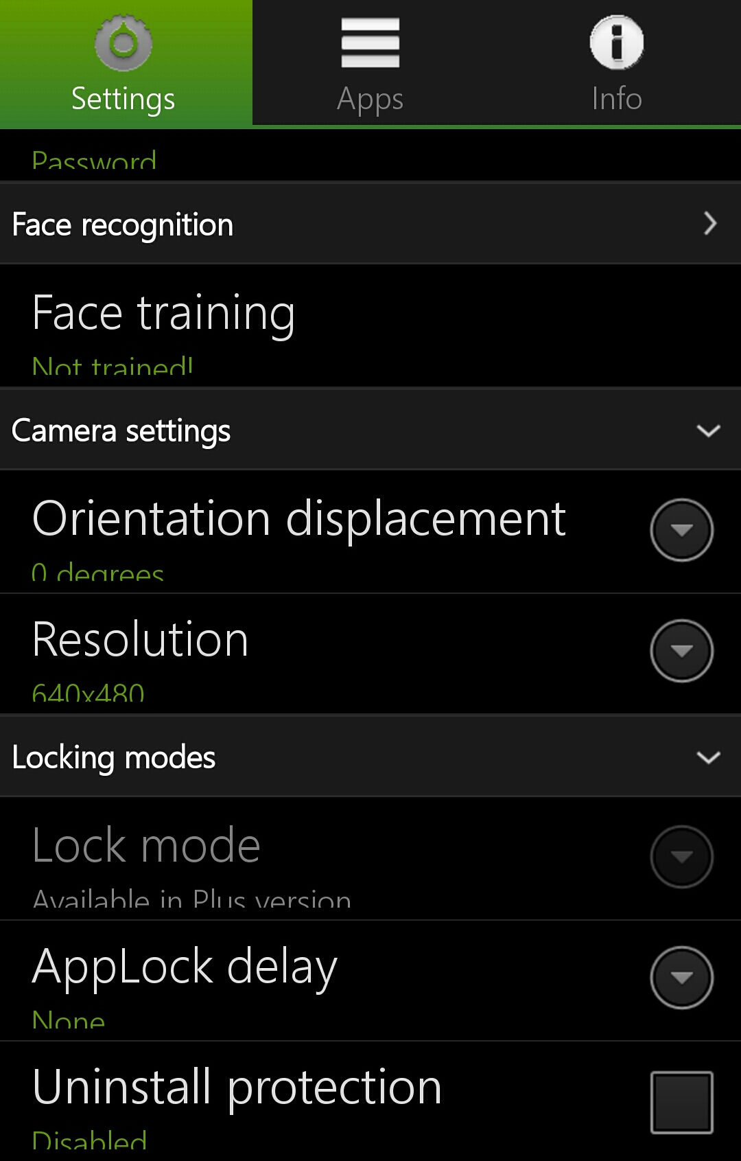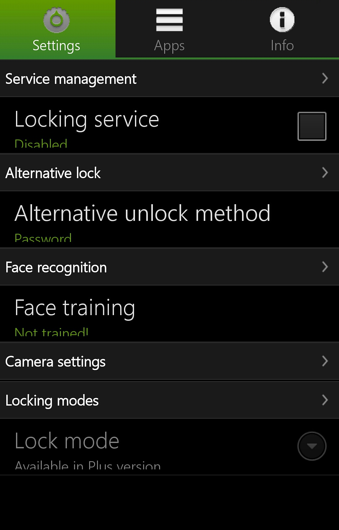 يتيح لك قفل تطبيقاتك بواسطة وجهك. يمكنك اضافته الى مسؤولو الاجهزة لضمان عدم قدرة العابثين على الغاء تثبيته. يفضل ان تقوم بتدريبه على وجهك عدة مرات ومن عدة زوايا للحصول على افضل نتيجة. والنسخة المدفوعة منه توفرلك المزيد من المميزات مثل القفل باستخدام رمز المرور PIN او النمط وتزيل الاعلانات من التطبيق.