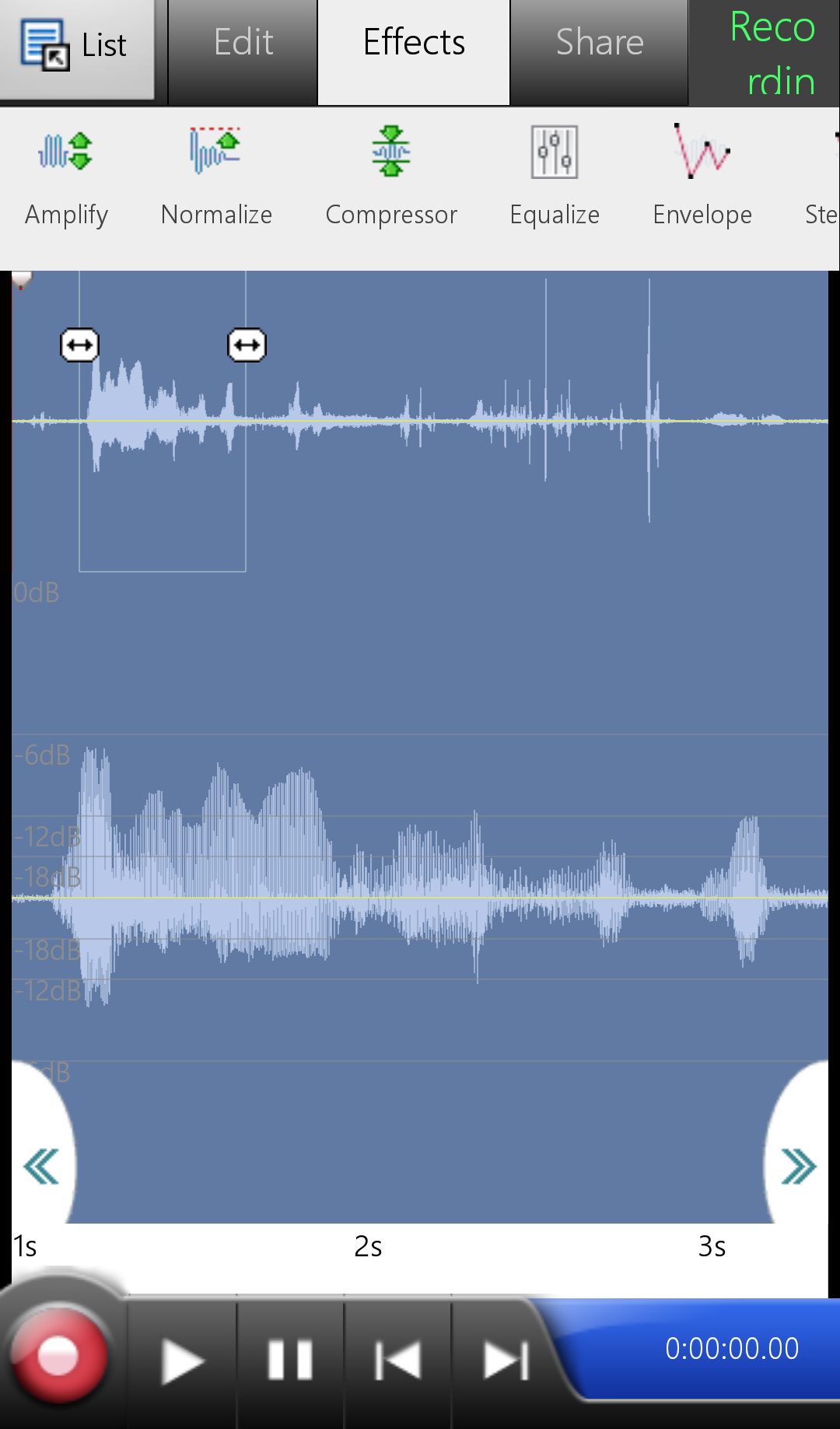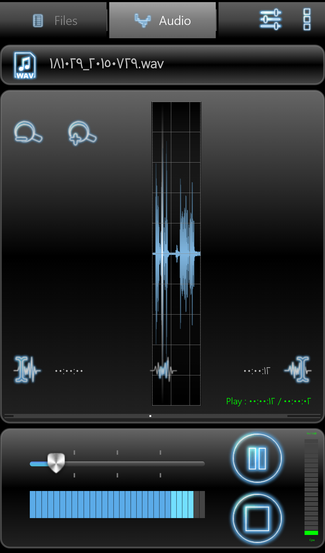 ماذا تتوقع من شركة انتجت تطبيق تعديل صوت احترافي على نظام وندوز، وبعدها جعلته متوفراً لنظام اندرويد !، تطبيق WavePad يتيح لك خصائص تسجيل وتعديل عميقة جداً، حيث يمكنك تسجيل الصوت بصيغة WAV، MP3 و AIFF، وامكانية تعديل معدل وحجم الترميز لكل واحدة من هذه الصيغ، وامكانية ارسال الناتج مباشرة عبر مخادم FTP، الى الان لا يوجد شيء مميز جداً، ولكن بالانتقال الى ميزات التعديل في التطبيق، سنرى قوته التي جعلته رقم 1 برأيي الشخصي بين هذه التطبيقات، حيث يتيح لك تقطيع الصوت، تضخيمه، تطبيعه، ضغطه، معادلته، عكسه، تضمينه، تسريعه، ونحن الى هنا لم نذكر نصف ما يحتوي من ادوات للتعديل !، فهناك الكثير من التاثيرات الاضافية التي يمكن استخدامها للتعديل كعمل صدى للصوت، تقليل الكلام من الصوت، عمل تلاشي للصوت وغيرها من المميزات التي تركنا لك متعة اكتشافها بنفسك.