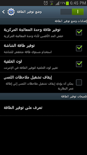 هذه الوضعية تساعد على توفير الطاقة وإنخفاض مستوى إستهلاك الطاقة بحدود تقريبية 45% … قم بتشغيل وضع توفير الطاقة وإختيار جميع الإختيارات .