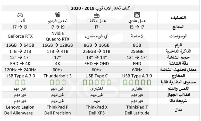 موضوع كبير عن طريقة اختيار اللاب توب في عام 2020 بناء على الموجود في السوق العالمي Laptop 2020