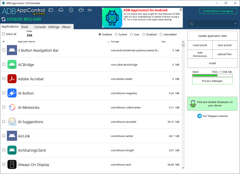 طريقة حذف التطبيقات الأساسية في نظام تشغيل أندرويد عبر ADB AppControl