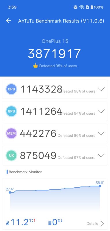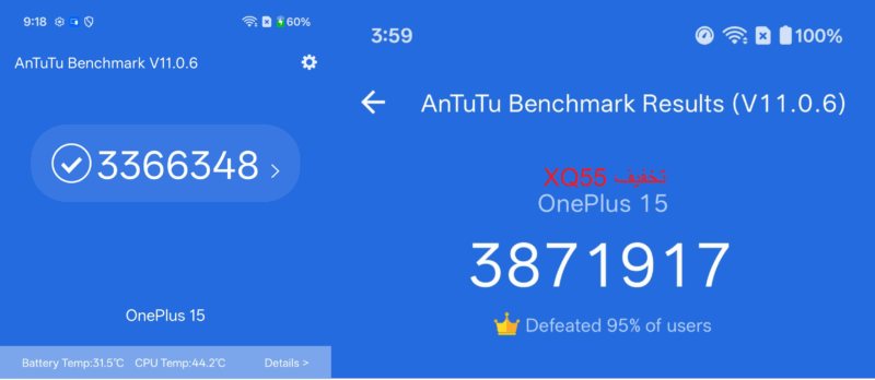 ** يمكن أن أزيد الأداء أكثر على حساب مميزات الهاتف لكن أكتفي بالوصول للمركز الثاني بعد ZTE nubia RedMagic 11 Pro