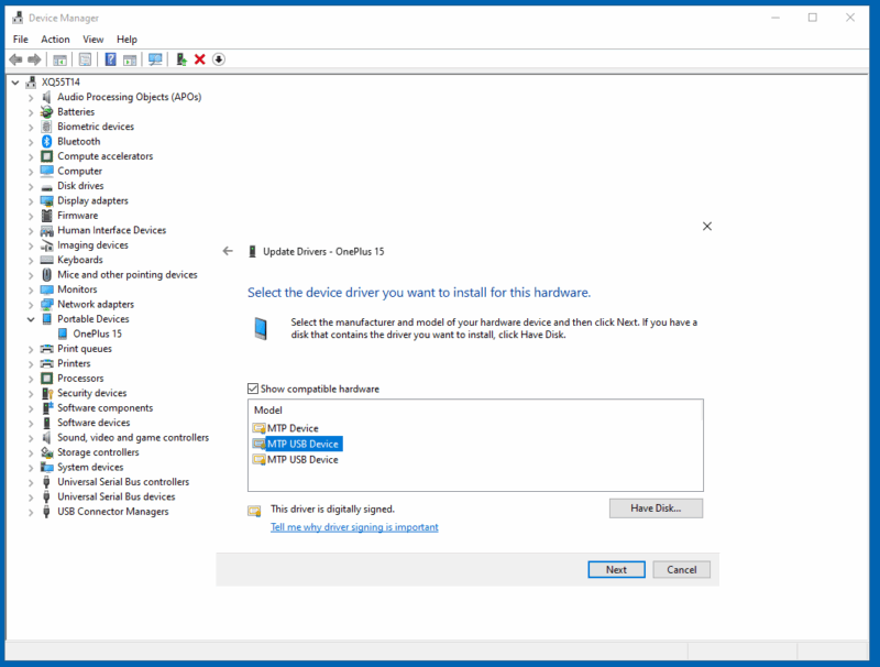 إذا لم يعمل يجب أن تعرف الدرايفر يدويا واختيار MTP USB Device