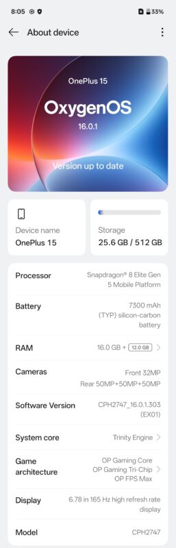 كم مستخدم من الرام عند أول تشغيل لجهاز ون بلس 15