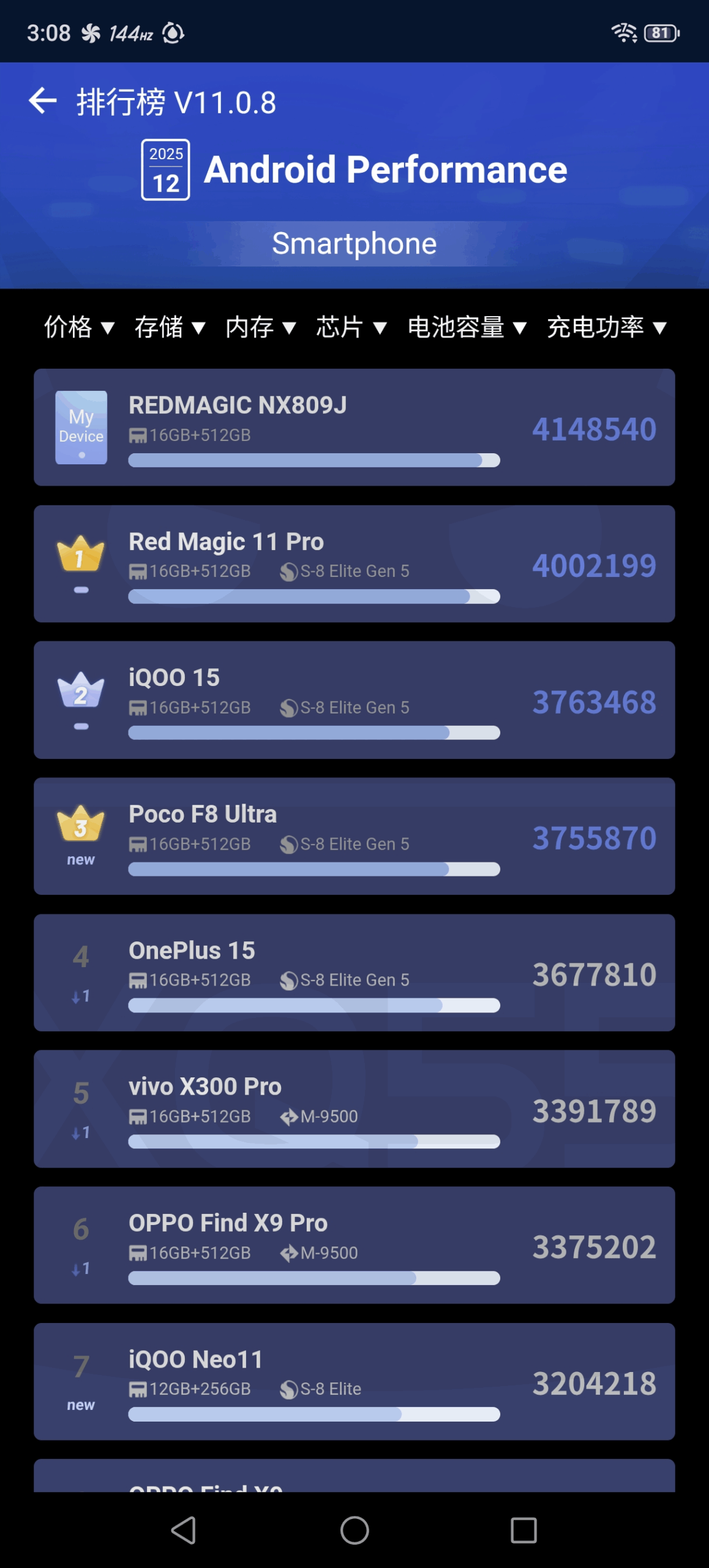 جهازك فارغ تماما بدون تسجيل حساب جيميل وبدون تحميل شيء يعطي نتائج أعلى.