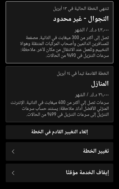 سعر الباقة بيانات غير محدودة شهريا هي 31 دينار كويتي